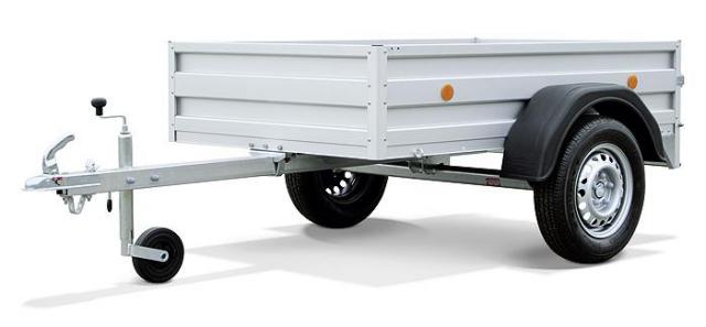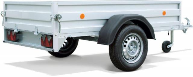 Remorque simple essieu. Disponible seule, avec une bâche et son armature ou en version basculante. Grande remorque avec ridelle arrière amovible et basculante. L'essieu peut supporter jusqu'à 750 kg. Remorque neuve livrée montée sous 4 semaines maximum en France continentale (hors Corse et îles). Taille de pneu standard : 155/70 R13. PTAC : 499 kg, possibilité d'avoir un PTAC de 750 kg. Garantie 12 mois.