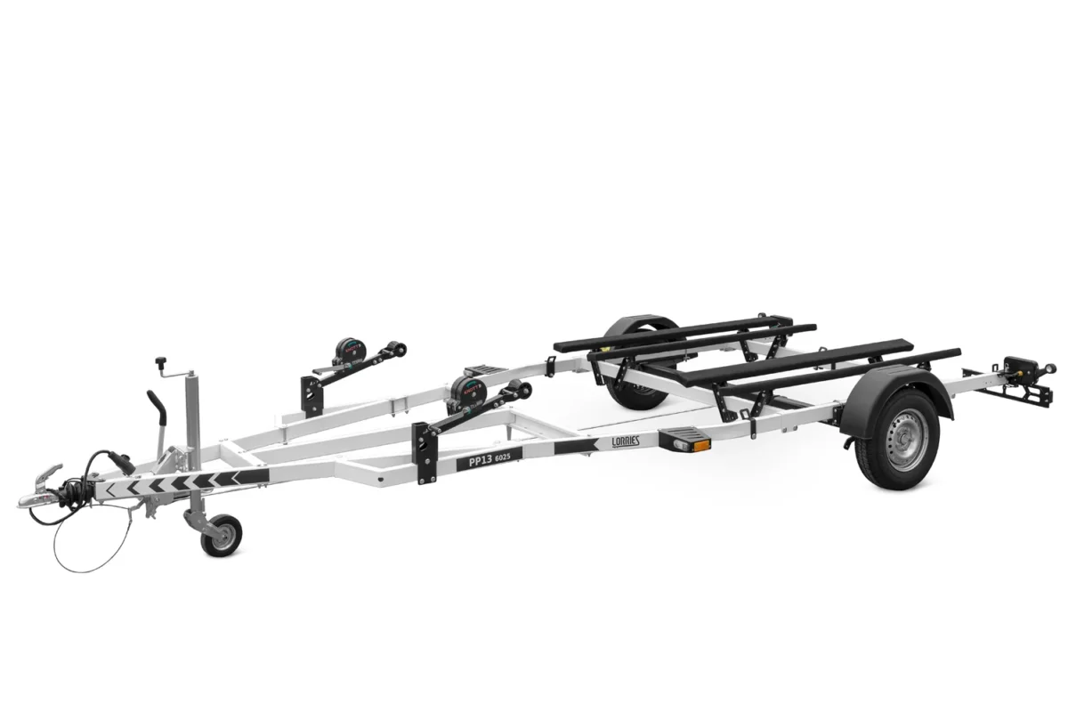 Remorque neuve livrée montée sous 4 semaines maximum en France continentale (hors Corse et îles). Vendu avec ou sans bâche et armatures. Remorque basculante avec un double essieu PTAC : 500 kg. AL-KO force 750 kg (1500 kg). Bâche haute de 80 cm et armature incluses. Taille de pneus standard : 155/70 R13.