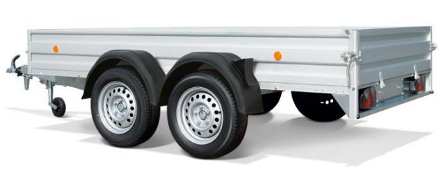 Remorque neuve livrée montée sous 4 semaines maximum en France continentale (hors Corse et îles). Vendu avec ou sans bâche et armatures. Remorque basculante avec un double essieu PTAC : 500 kg. AL-KO force 750 kg (1500 kg). Bâche haute de 80 cm et armature incluses. Taille de pneus standard : 155/70 R13.