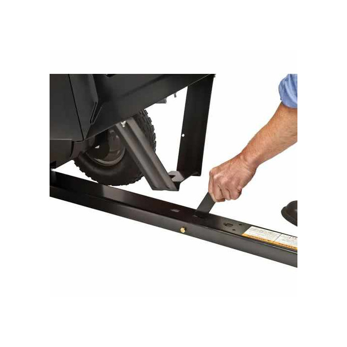 - Fixation sur la tondeuse autoportée par un axe d’attelage