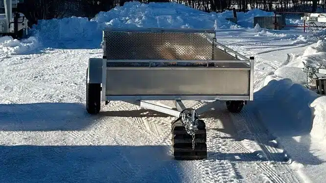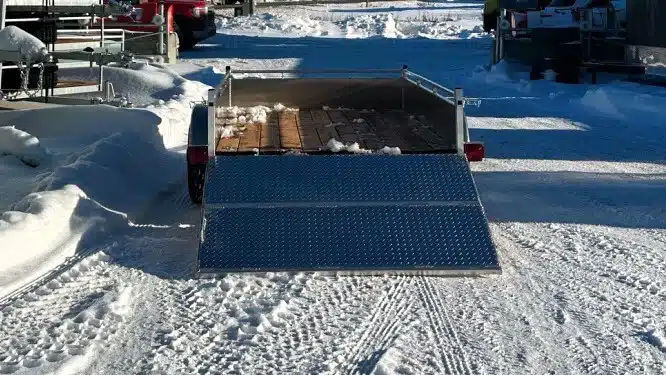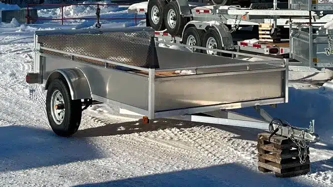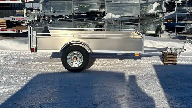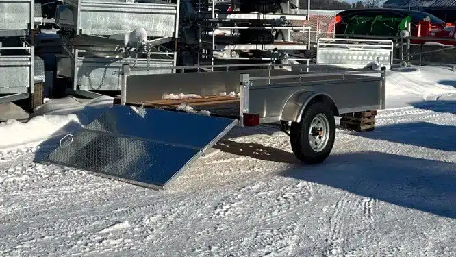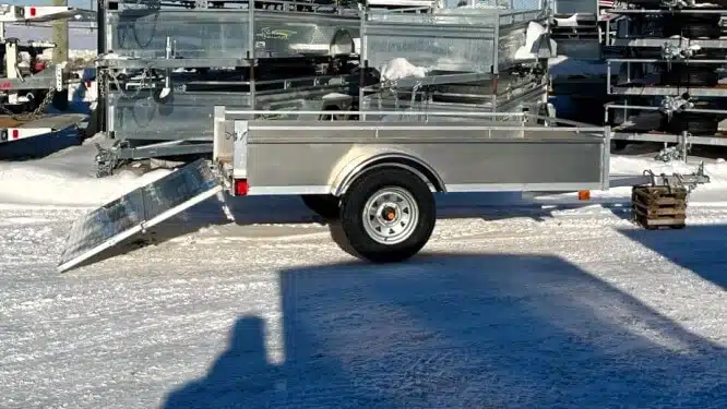 Remorque 5×10 en aluminium 2X3500 lbs côtés ajourés et panneau rampe 2024
