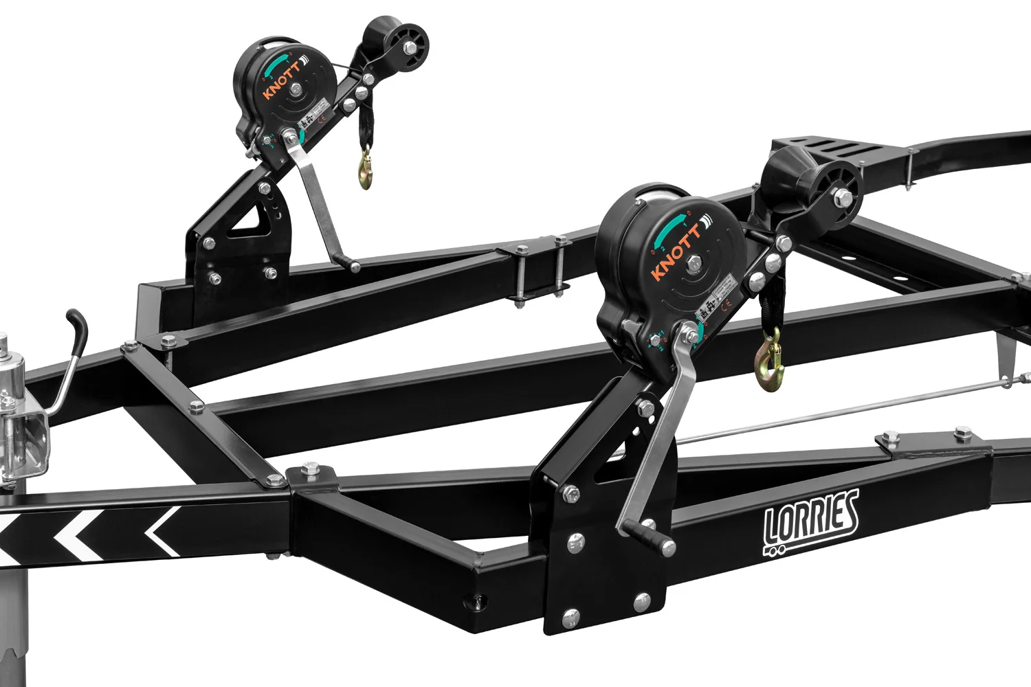 Le modèle est équipé de crochets permettant de fixer la charge avec des sangles en toute sécurité et de façon sûre. La remorque peut également être équipée de 4 crochets supplémentaires permettant de fixer le bateau de chaque côté encore mieux et plus efficacement.