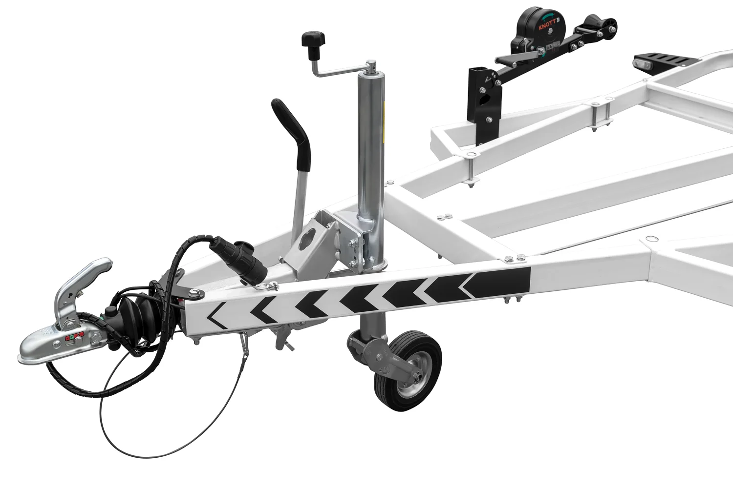 En standard, la remorque est équipée parmi d’autres de feux LED basculants. Grâce à cette solution, il n’y a aucune possibilité d’endommager le jet-ski pendant le chargement. La technologie LED prolonge la durée de vie de l’éclairage tandis que les connecteurs à baïonnette permettent, si nécessaire, un démontage facile des feux tout en garantissant l’étanchéité de l’ensemble du système. L’éclairage fait partie intégrante du véhicule et son utilisation est intuitive. Il peut être facilement déverrouillé et positionné de façon appropriée pour permettre l’entrée ou la sortie du jet-ski.